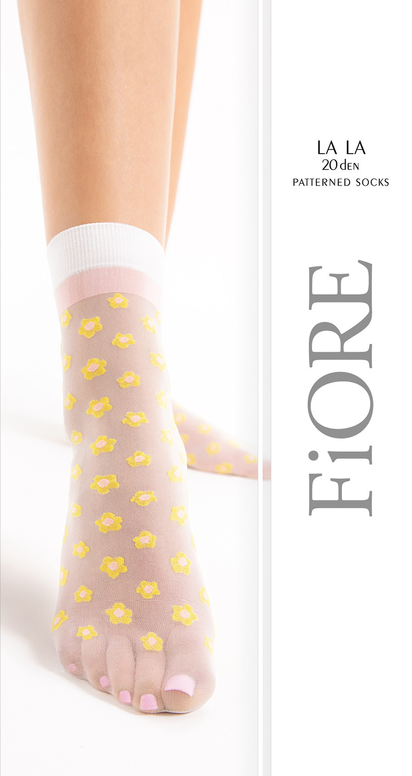 Sokken met een bloemenpatroon, zo klein als vergeet-me-nietjes. Ze roepen herinneringen op aan de eenvoudige genoegens van zonnige tijden. In deze dunne sokken voel je je zorgeloos, alsof je op wolken zweeft.