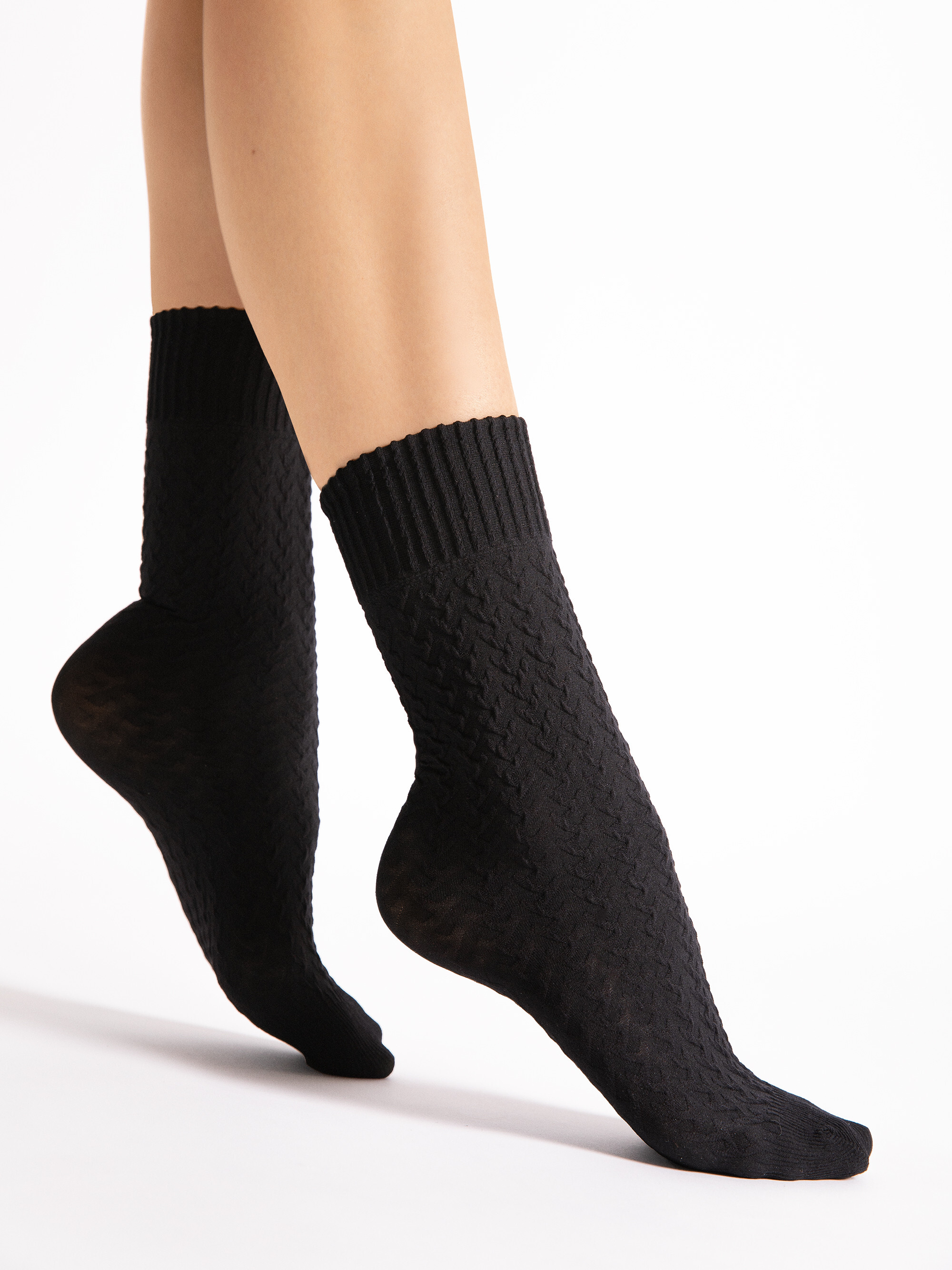 Informations sur le produit "Ondoorzichtige sokken met een kabelbreipatroon en een comfortabele boord van Fiore"