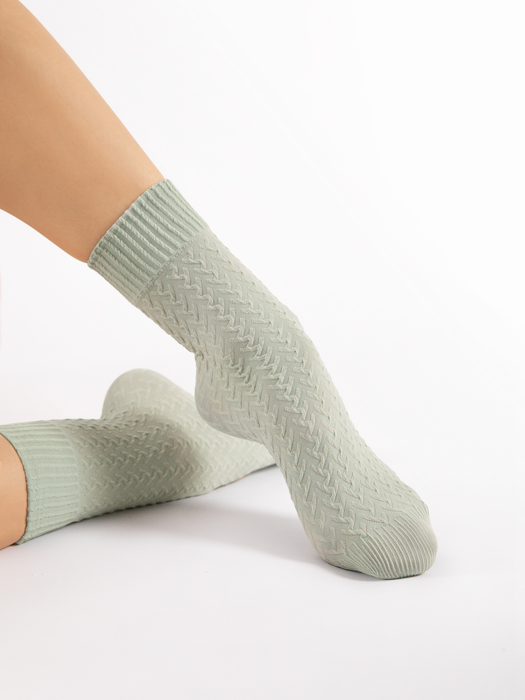 Liens supplémentaires vers "Ondoorzichtige sokken met een kabelbreipatroon en een comfortabele boord van Fiore"