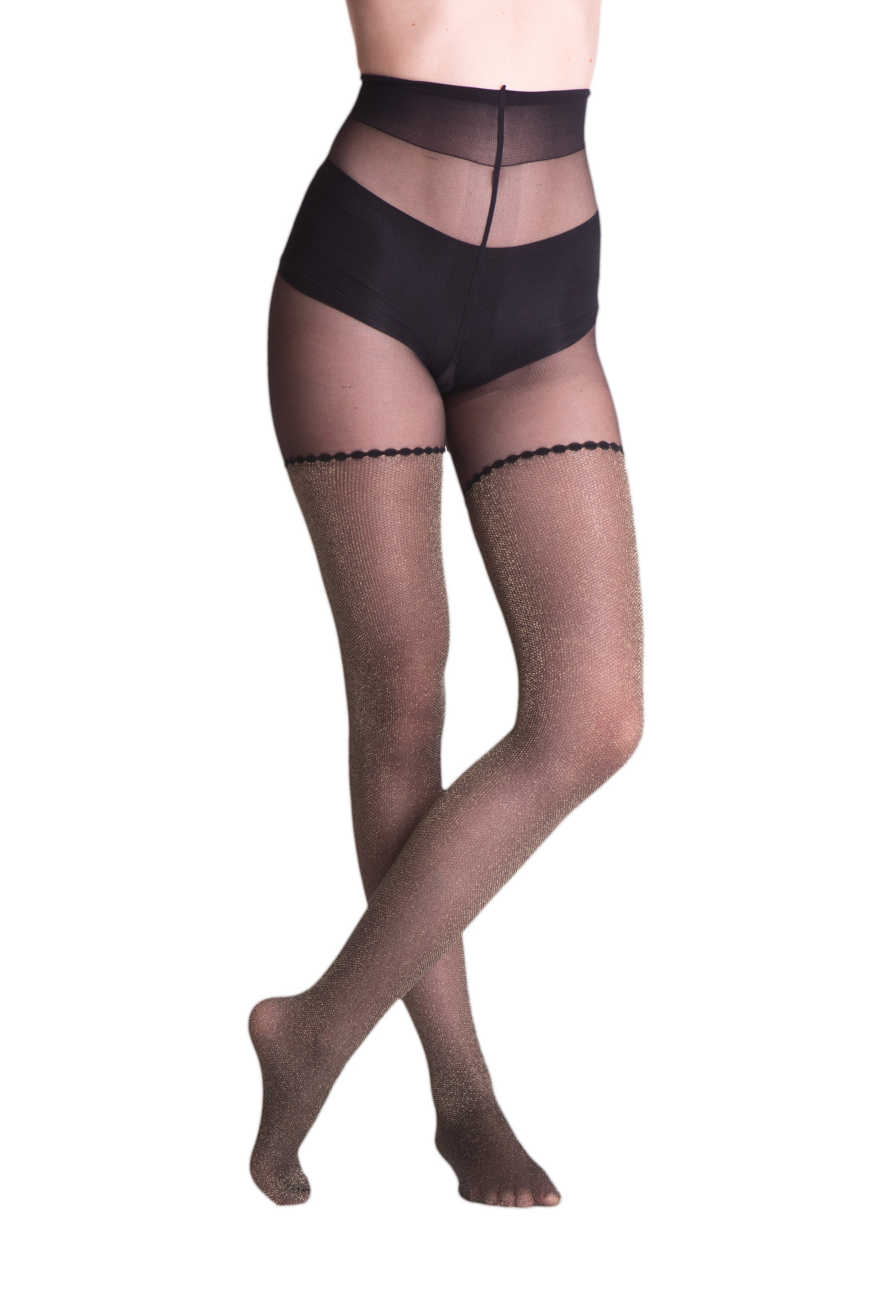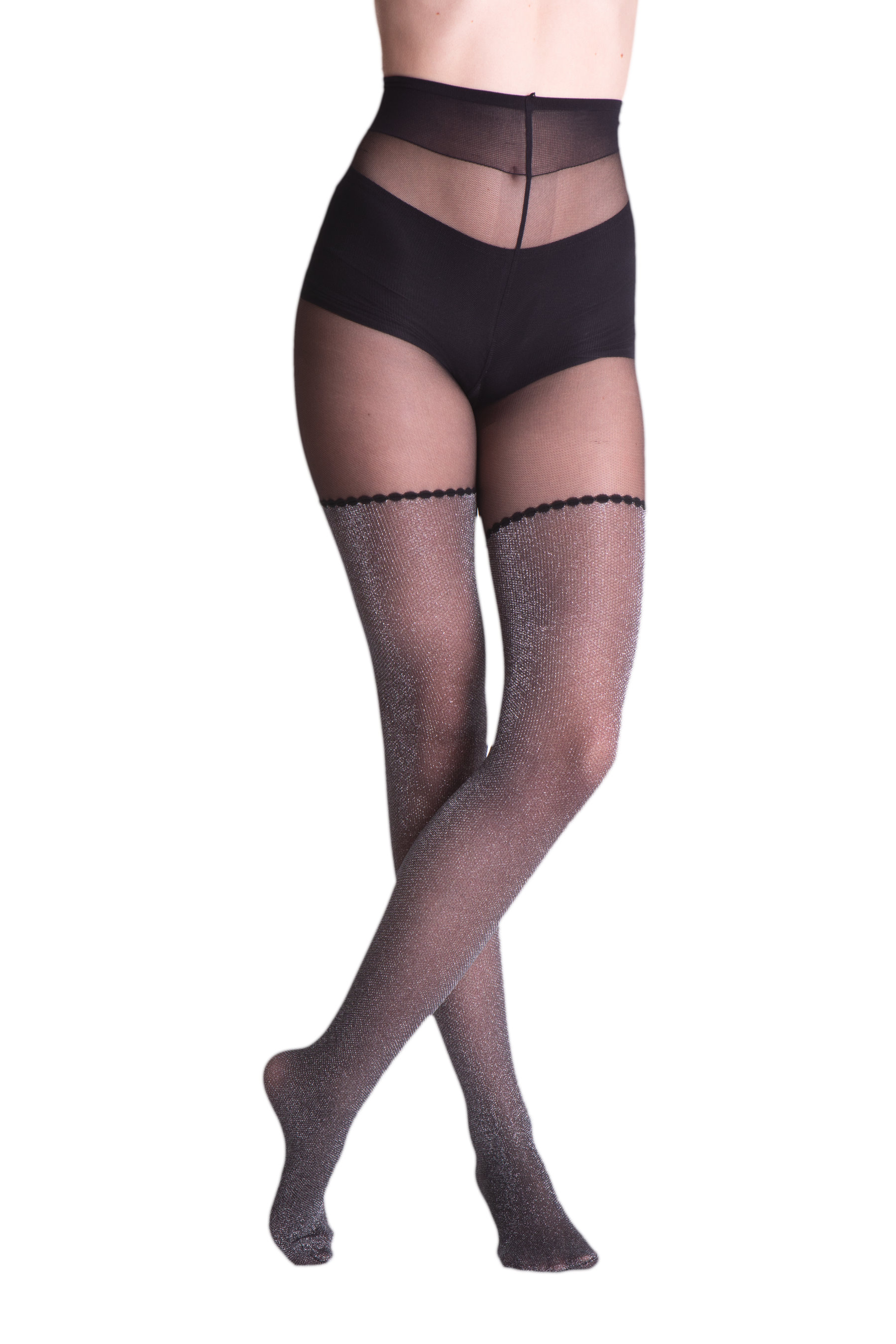 Liens supplémentaires vers "Semi-opaque panty met Lurex-effect en kousenmotief van Trasparenze"