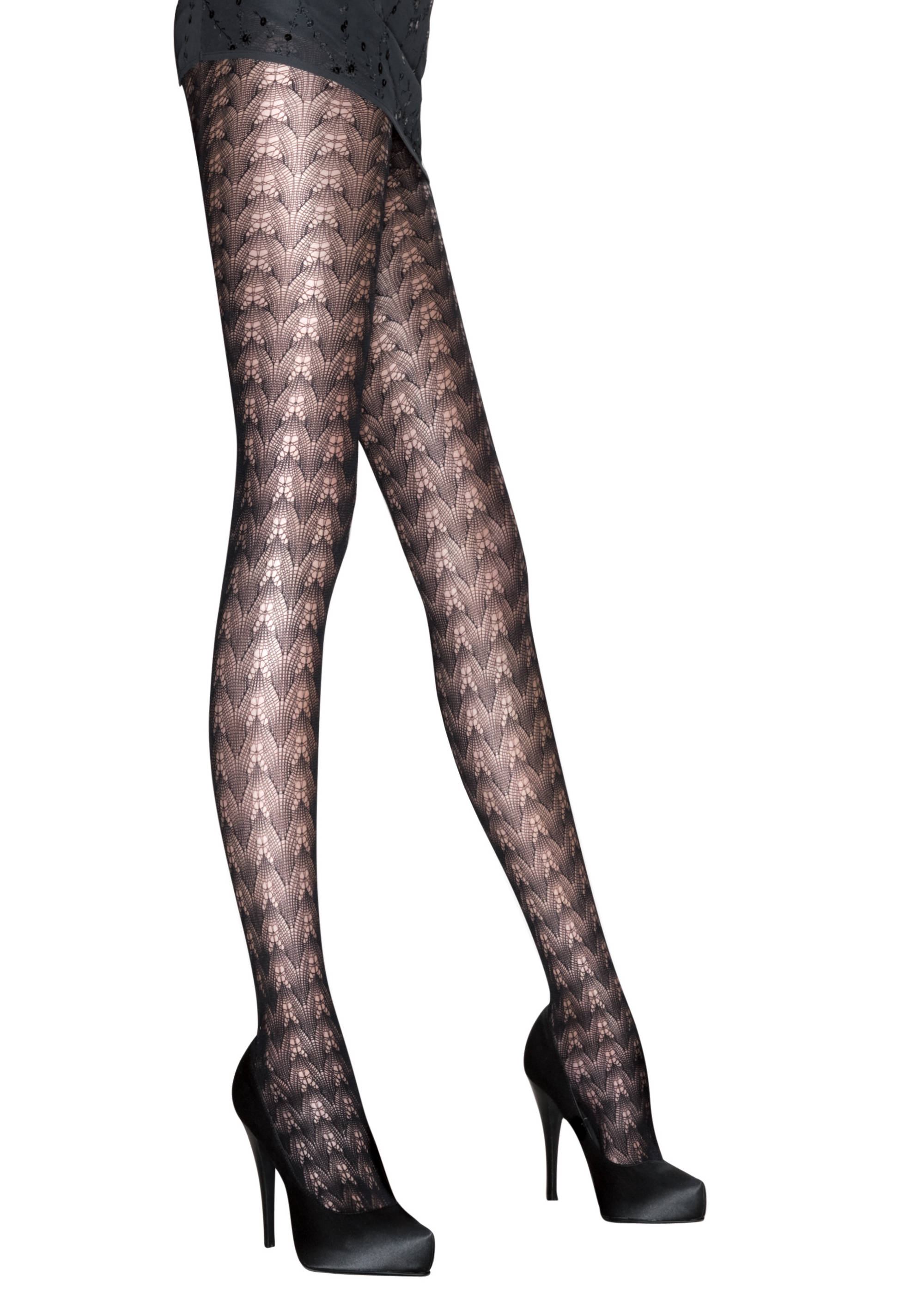 Opengewerkte panty met zickzack patroon in een kanten look.