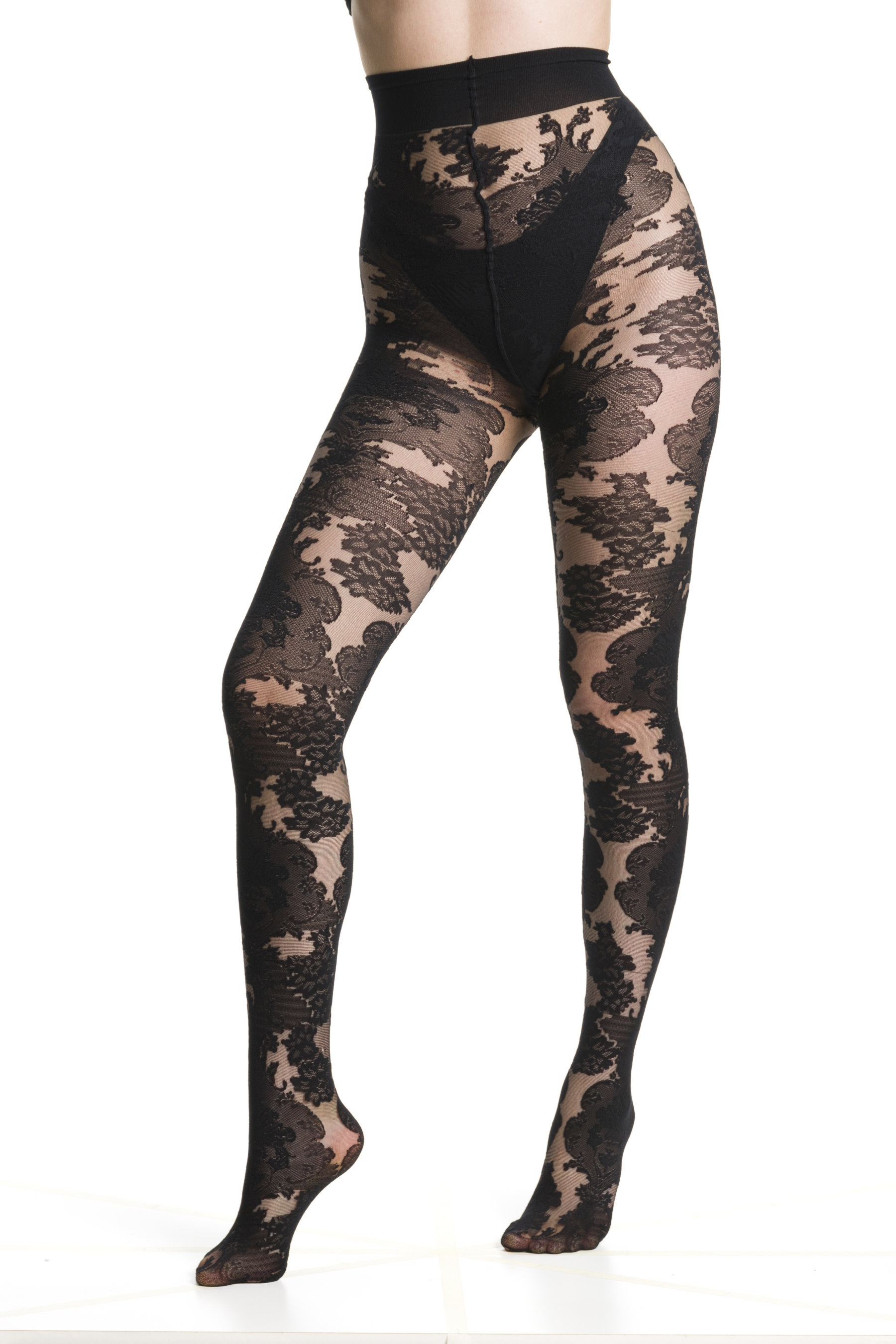 Semi-opaque panty met een weelderig damastpatroon en een prachtig kanteffect om je benen perfect...meer